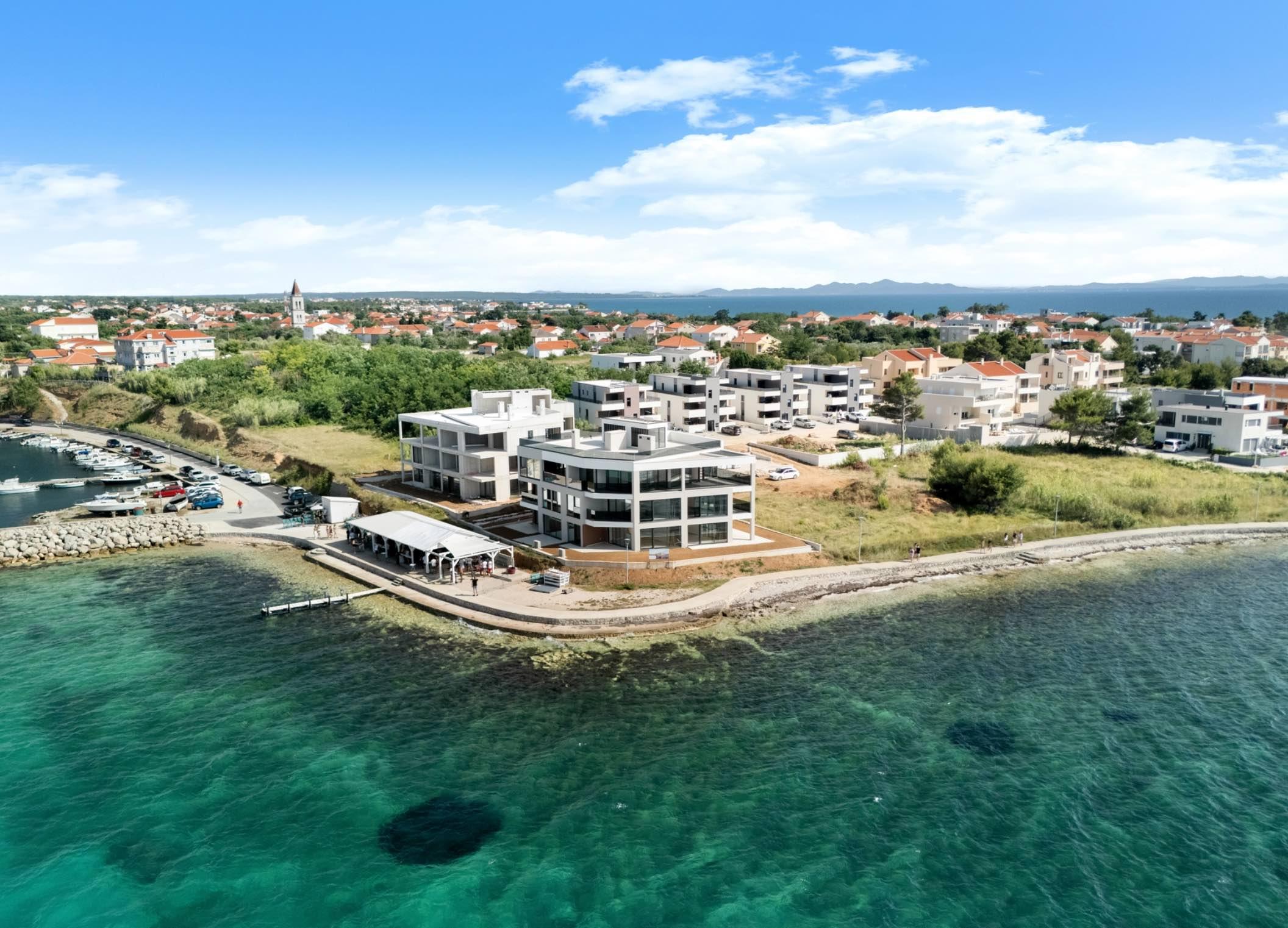 Luxusné apartmány v 1. rade pri mori , Privlaka pri Zadare, p anoramatický výhľad a more, moderný projekt na promenáde dlhej 8 km, budova je dokončená a má vydané kolaudačné rozhodnutie, ...
