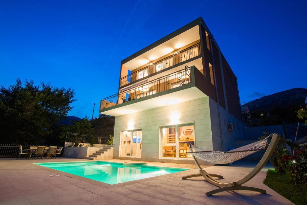 Súčasťou exteriéru je upravená stredomorská záhrada, priestranné terasy a vonkajší bazén situovaný v centre pozemku, ktorý poskytuje vysokú mieru súkromia.