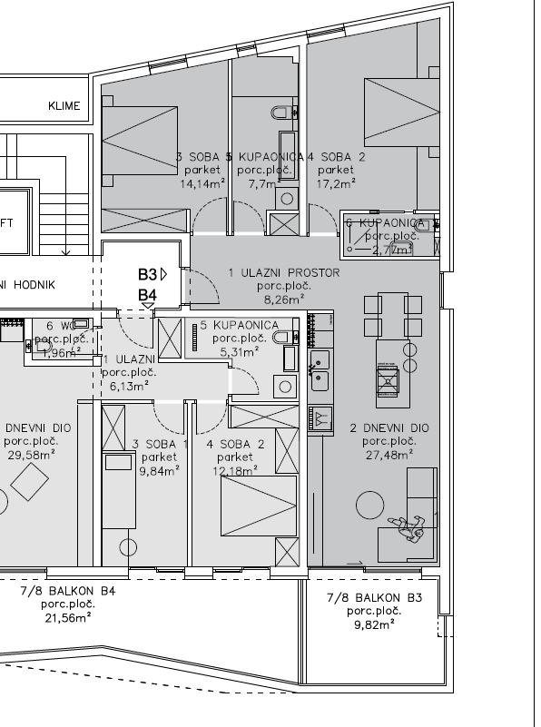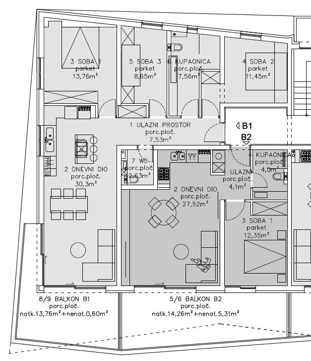 B1 – 86,45 m², 3 spálne, kúpeľňa, WC, balkón – 390 000 €