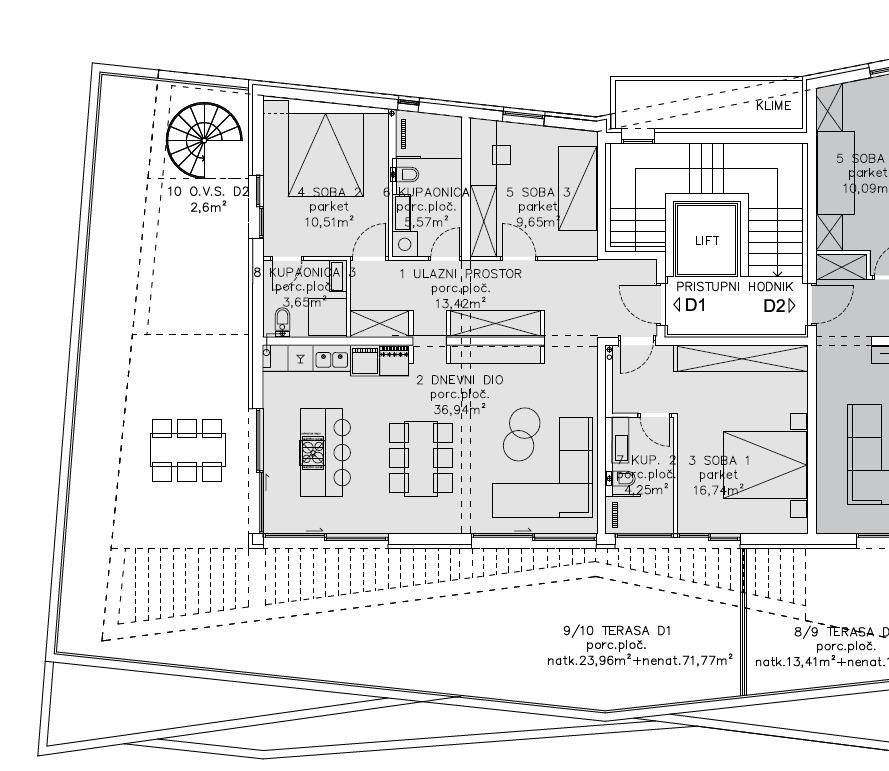 D1 – 130,23 m², penthouse, 3 spálne, 3 kúpeľne, terasa – 790 000 €
