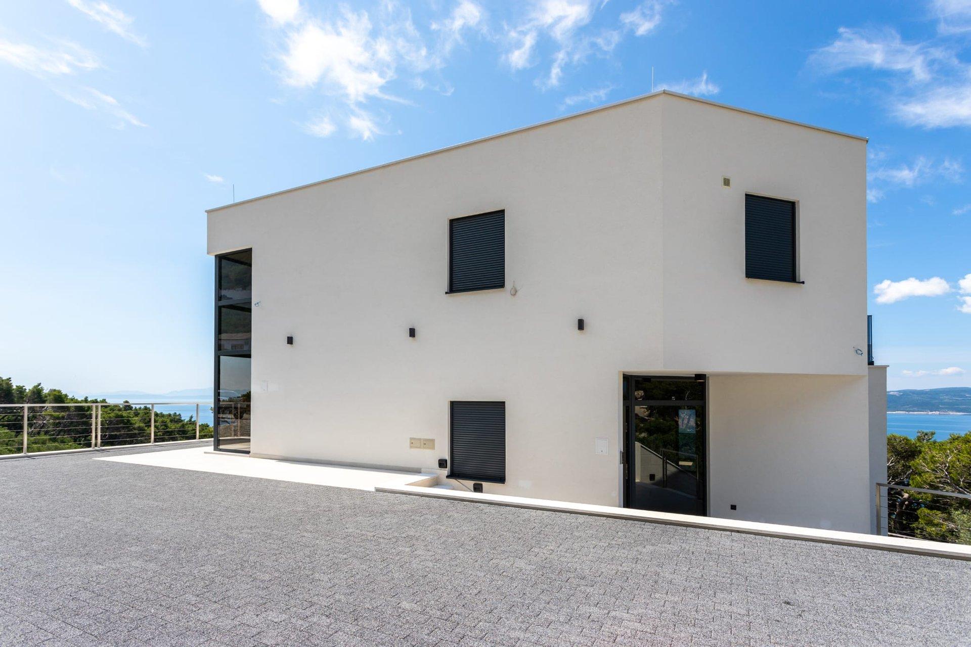 Vila je orientovaná na juh a ponúka očarujúci panoramatický výhľad na more a ostrovy. Vonkajšie parkovisko pre 4 autá sa nachádza na severnej strane pozemku.