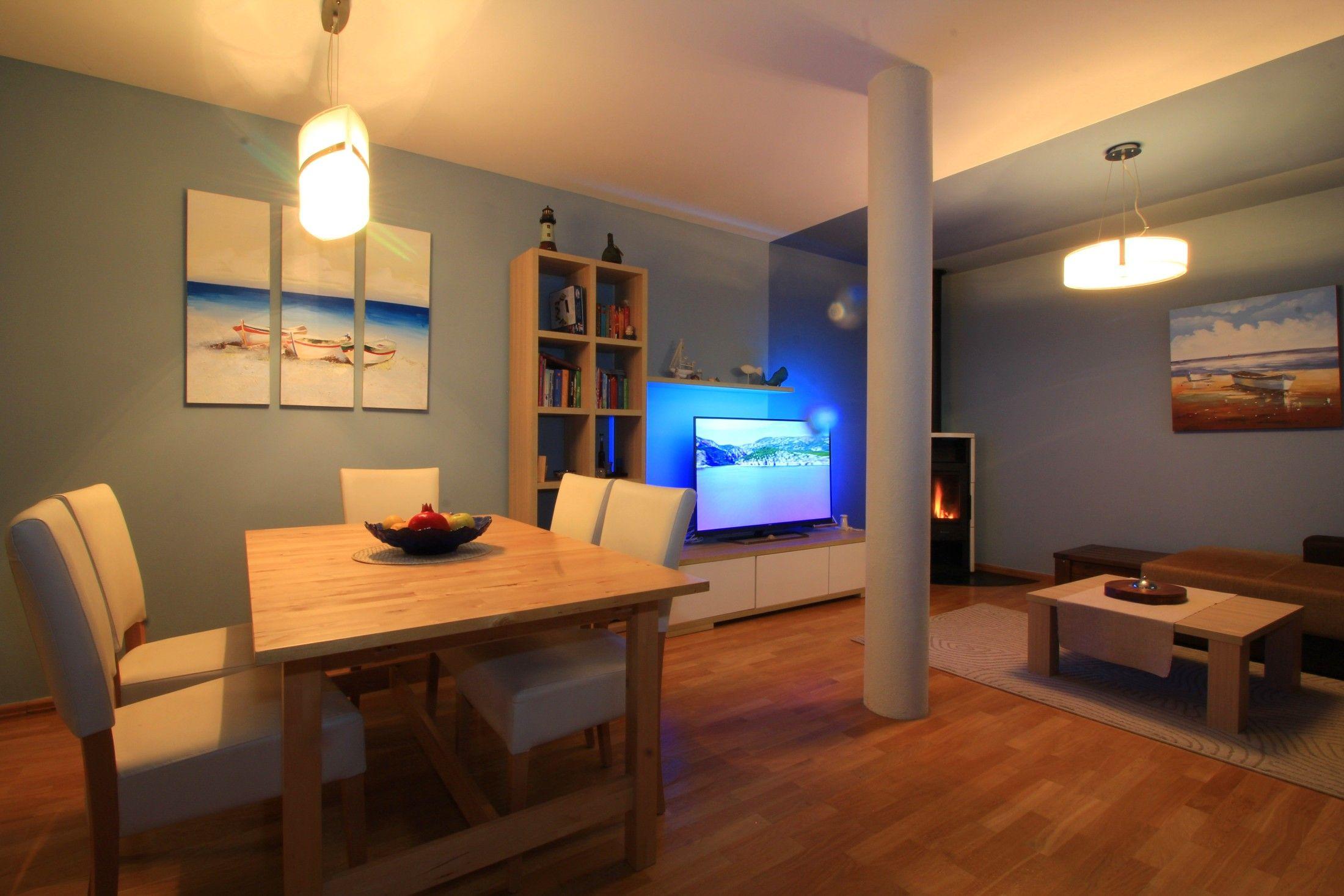 Apartmán na prízemí pozostáva z priestrannej otvorenej dispozície obývačky s jedálenským kútom, kuchyne, špajze a kúpeľne a pokračuje na krytú terasu s krásnym výhľadom na more. Na poschodí je galéria prepojená vnútorným schodiskom a obsahuje 2 spálne, jednu s vlastnou kúpeľňou a krytú terasu s krásnym otvoreným výhľadom na Kvarner a more.