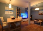 Apartmán na druhej strane má samostatný vchod, ktorý sa nachádza na 1. poschodí a pozostáva z obývacej izby a jedálne, kuchyne, spálne, kúpeľne a krytej terasy otočenej k moru.