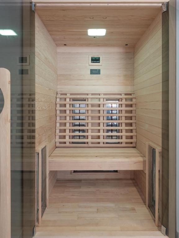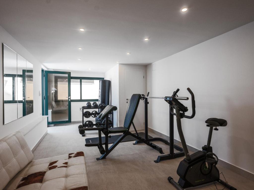Suterén: wellness zóna so saunou, malou posilňovňou, WC a technickou miestnosťou bazéna.
