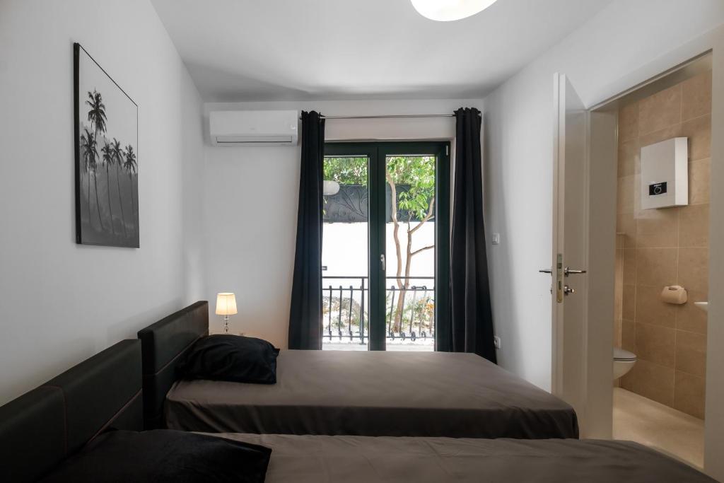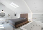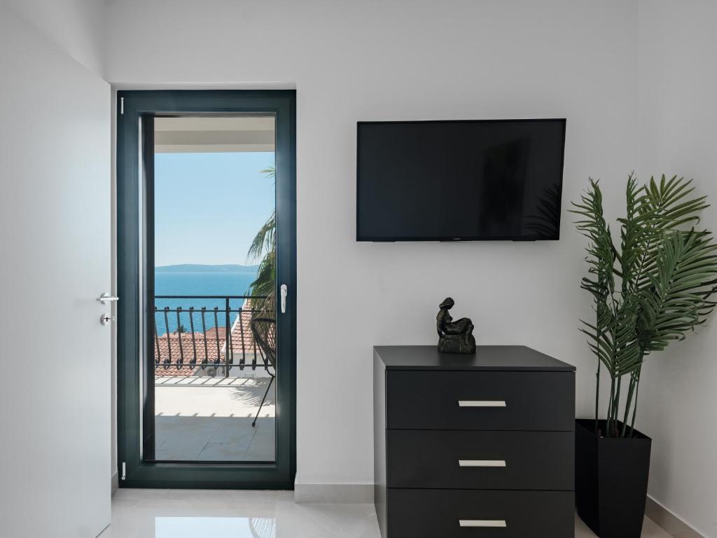 Druhé poschodie: luxusná spálňa s jacuzzi, kúpeľňa, kuchyňa s práčovňou, obývacia izba s výstupom na terasu s panoramatickým výhľadom na more a ostrovy.