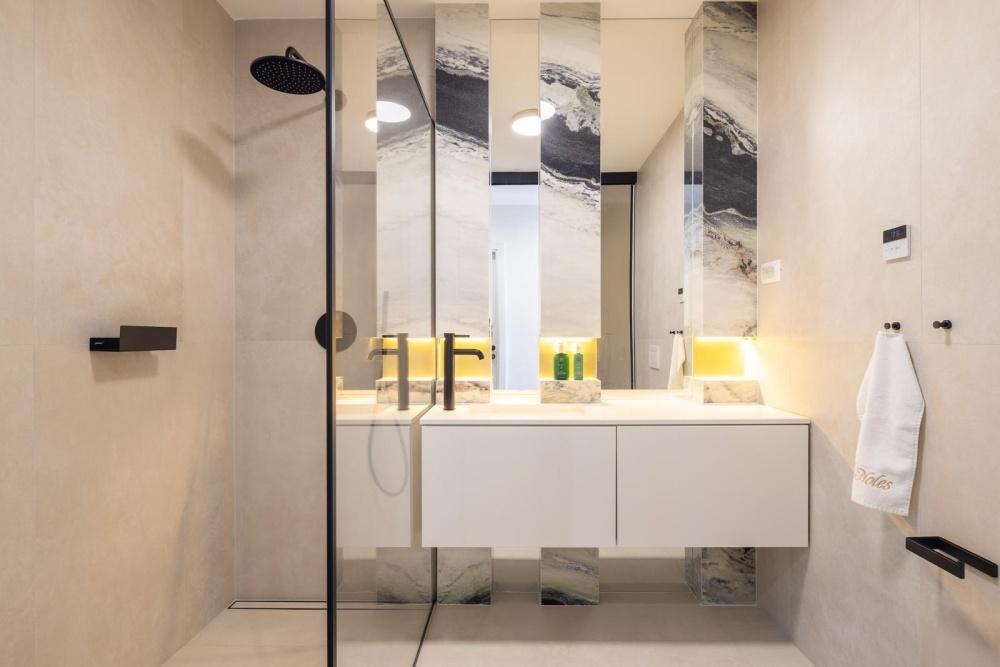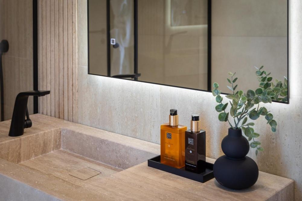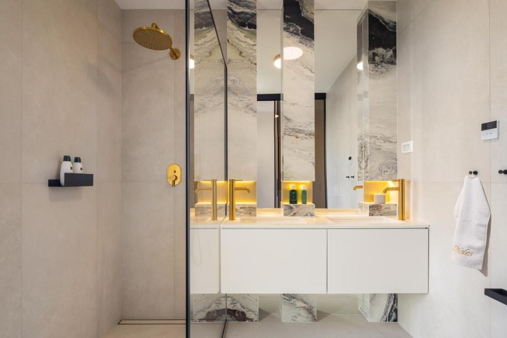 Na prvom poschodí sú 2 spálne s vlastnou kúpeľňou a výhľadom na more.