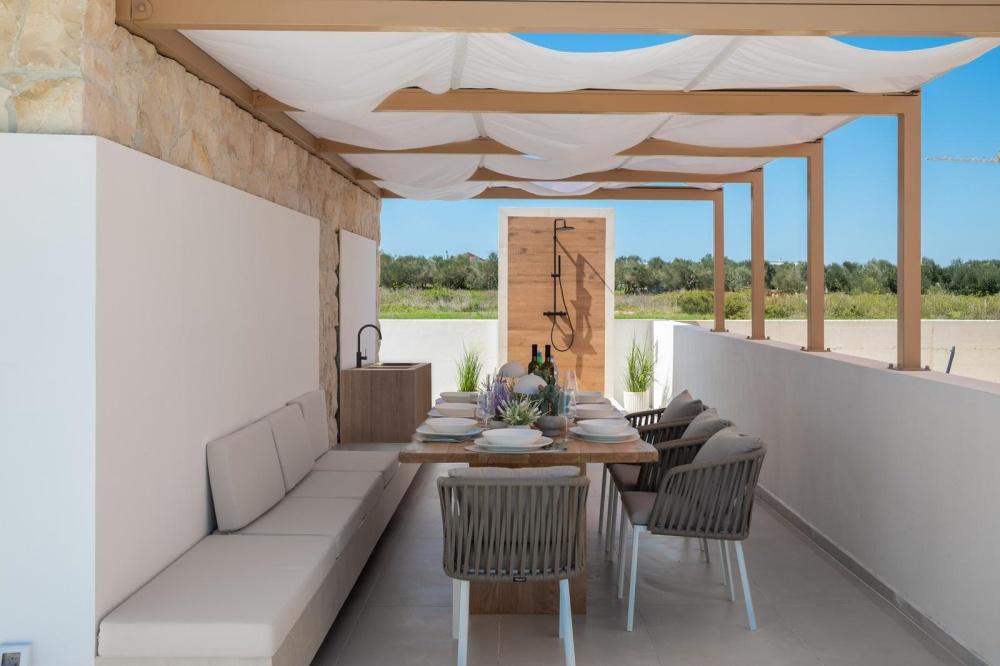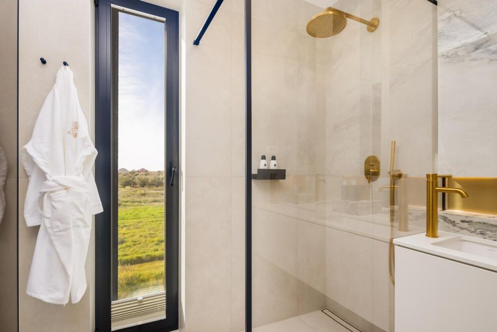 Na druhom poschodí sú ďalšie dve spálne s kúpeľňami a prístupom na terasu s výhľadom na more.